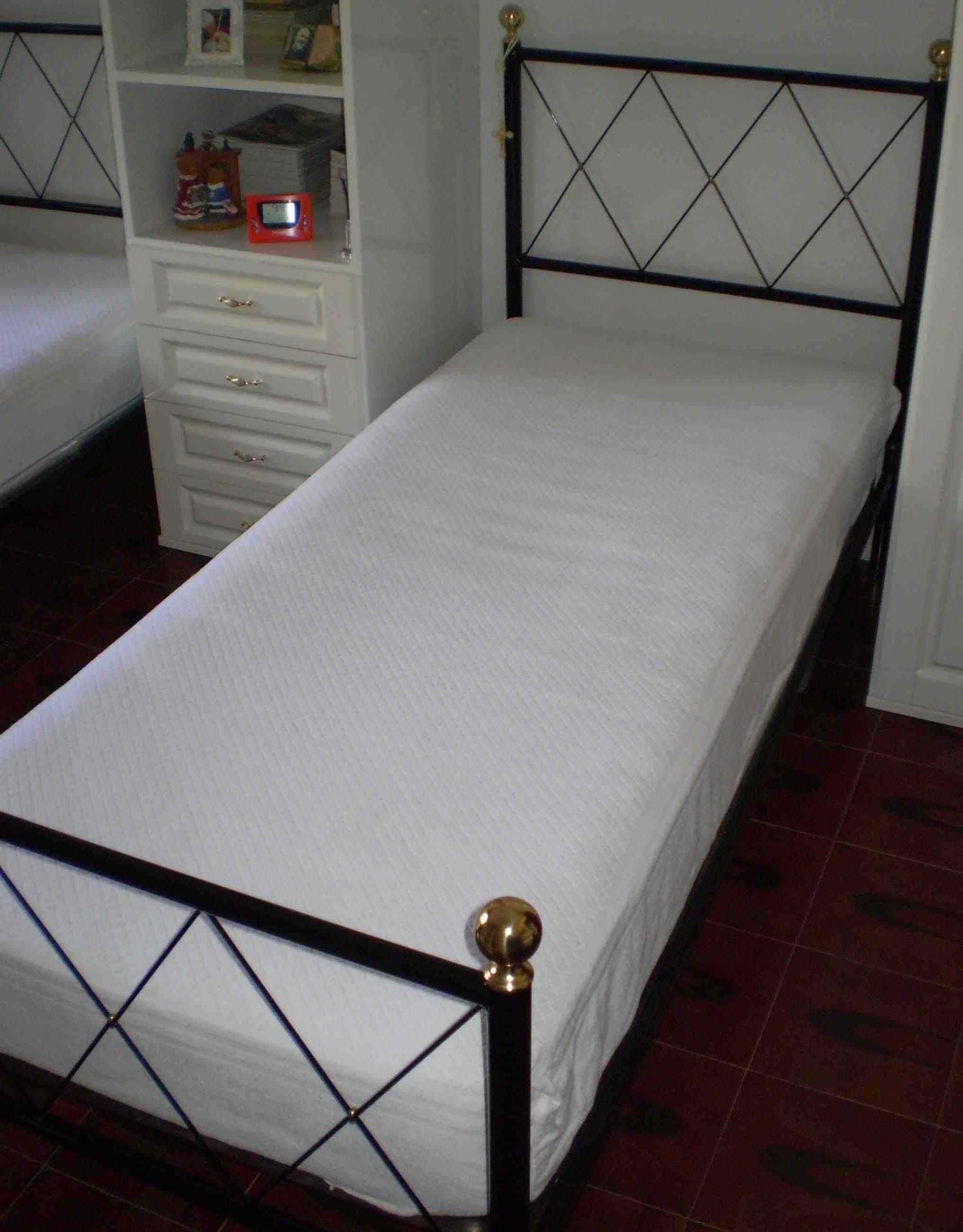 coppia di lettini con rete (no materasso), col. nero, con spalliera, pomi dorati, in ottime condizioni, vendo tutti e due insieme.